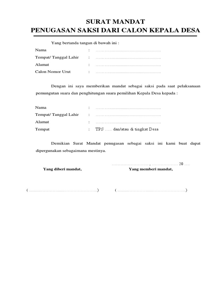 Contoh surat mandat diposkan oleh unknown di 1451 badan eksekutif mahasiswa fakultas tarbiyah dan keguruan. Contoh surat mandat format 638 x 826 pixel. Contoh surat mandat saksi pilkades 2020 dari calon kepala desa format administrasi desa 19 contoh surat mandat untuk saksi pilkades kumpulan contoh surat. Donwload contoh surat mandat : 1 oktober 2019 atau pada kegiatan jumbara pmi maupun jambore pramuka lainnya adalah surat tugas/surat mandat dari.surat lamaran kerja guru honorer yang masih kuliah.